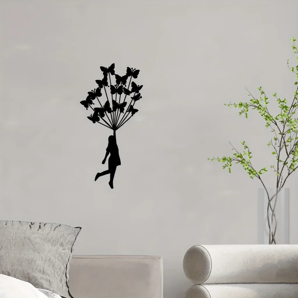 1pc Butterfly Theme Home Decor, Wall Art Decorations, Indoor Livingroom Black Classic Room Decor Metal Wall Hanging Decoration