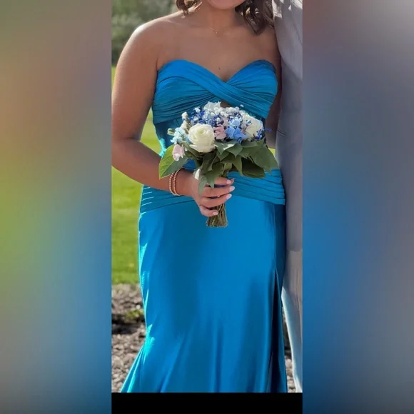 This exquisite Sherri Hill gown in a captivating blue hue features a sleeveless design with a sweetheart neckline, perfect for making a statement at prom. The luxurious fabric drapes elegantly, creating a graceful silhouette that flows into a full-length skirt. Its timeless style and vibrant color ensure you'll stand out on your special occasion. True size 6. No alterations.
